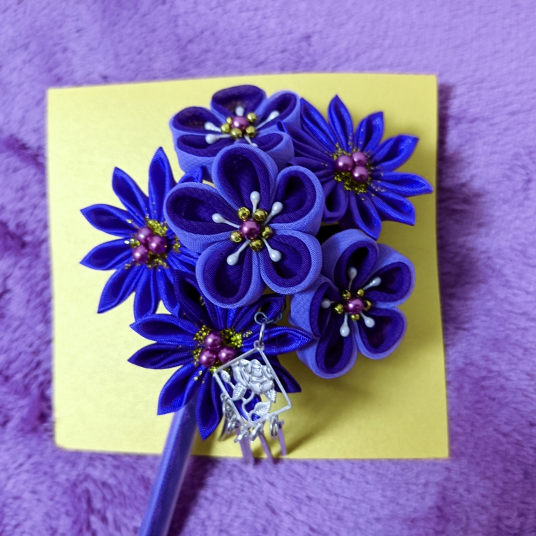 This original kanzashi is handmade by traditional Japanese artisan Orishian. Mounted to an alligator clip. Tassel is in a protective plastic tube, please remove before use.