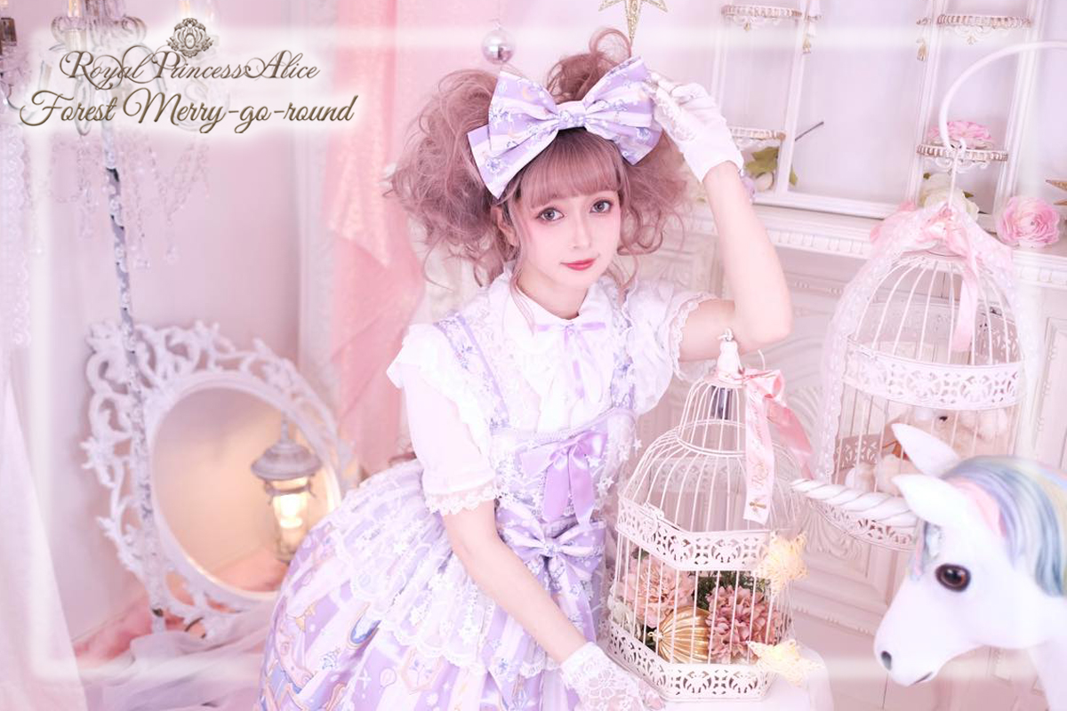 This print from Royal Princess Alice is a collaboration with lolita illustrator Shirosaki London. Ride along with these adorable animals on the cutest merry-go-round, created by London!