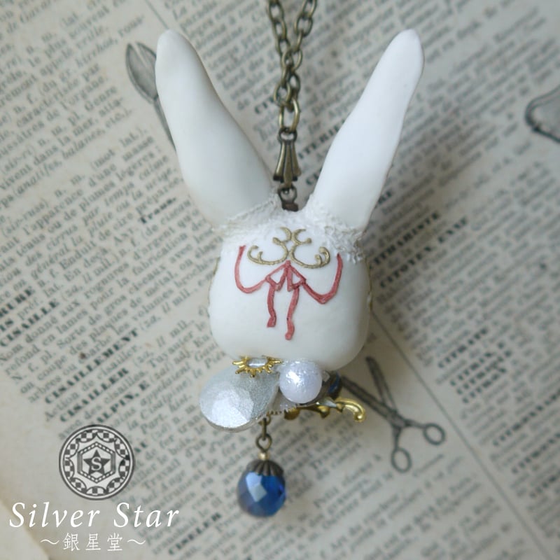 A porcelain rabbit decorated with vanda orchid flowers, gears, and gem parts.