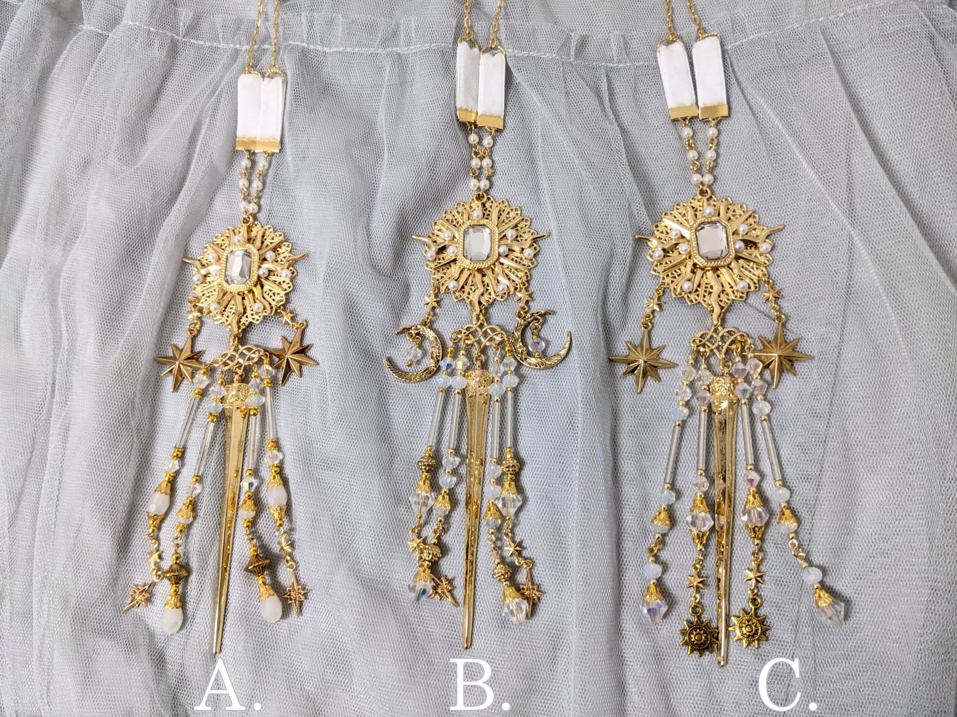 An extravagant accessory inspired by things that shine brightly, such as the sun, the moon, the stars.