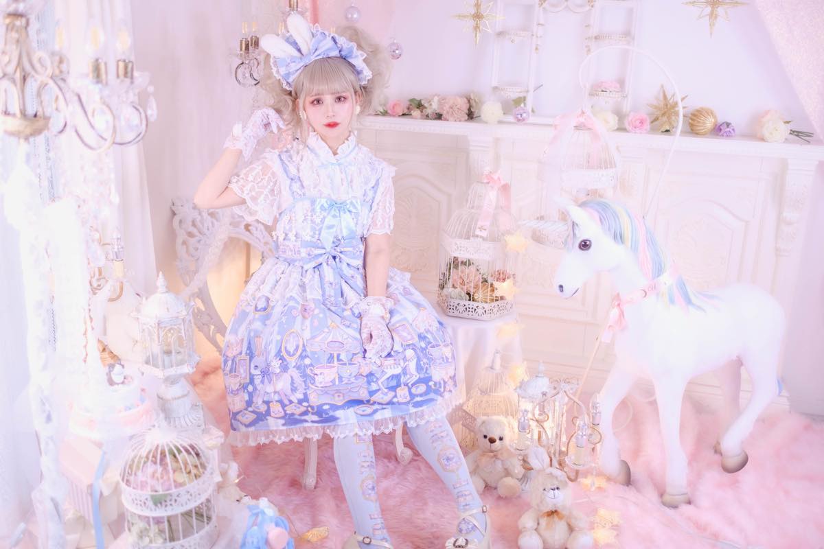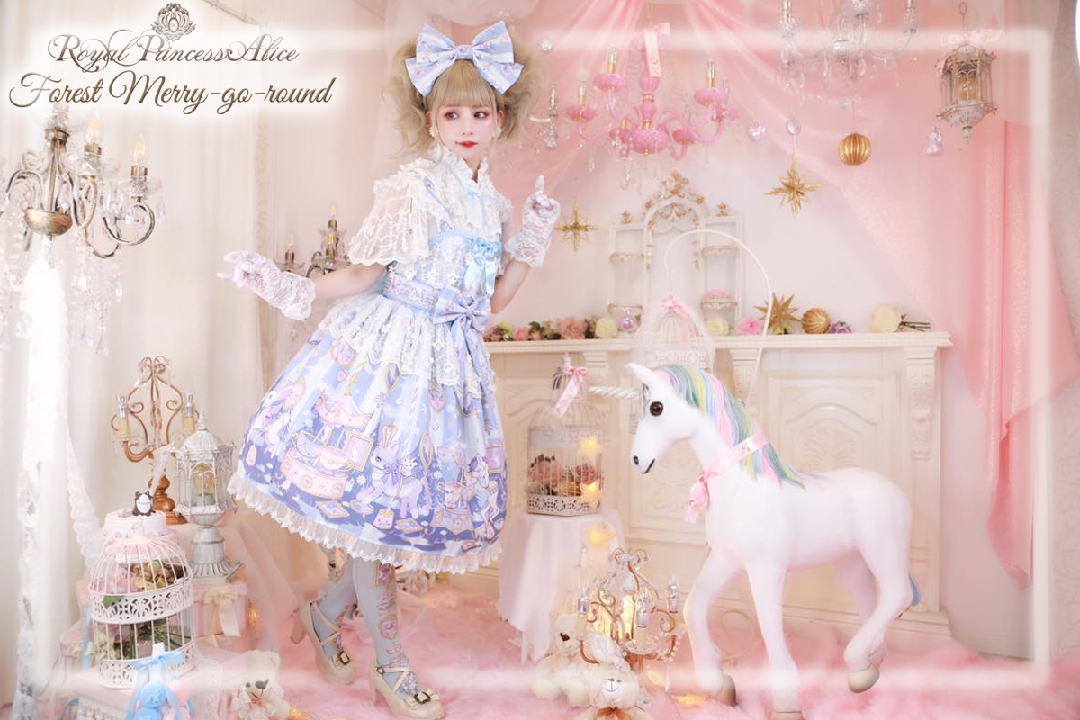 This print from Royal Princess Alice is a collaboration with lolita illustrator Shirosaki London. Ride along with these adorable animals on the cutest merry-go-round, created by London!