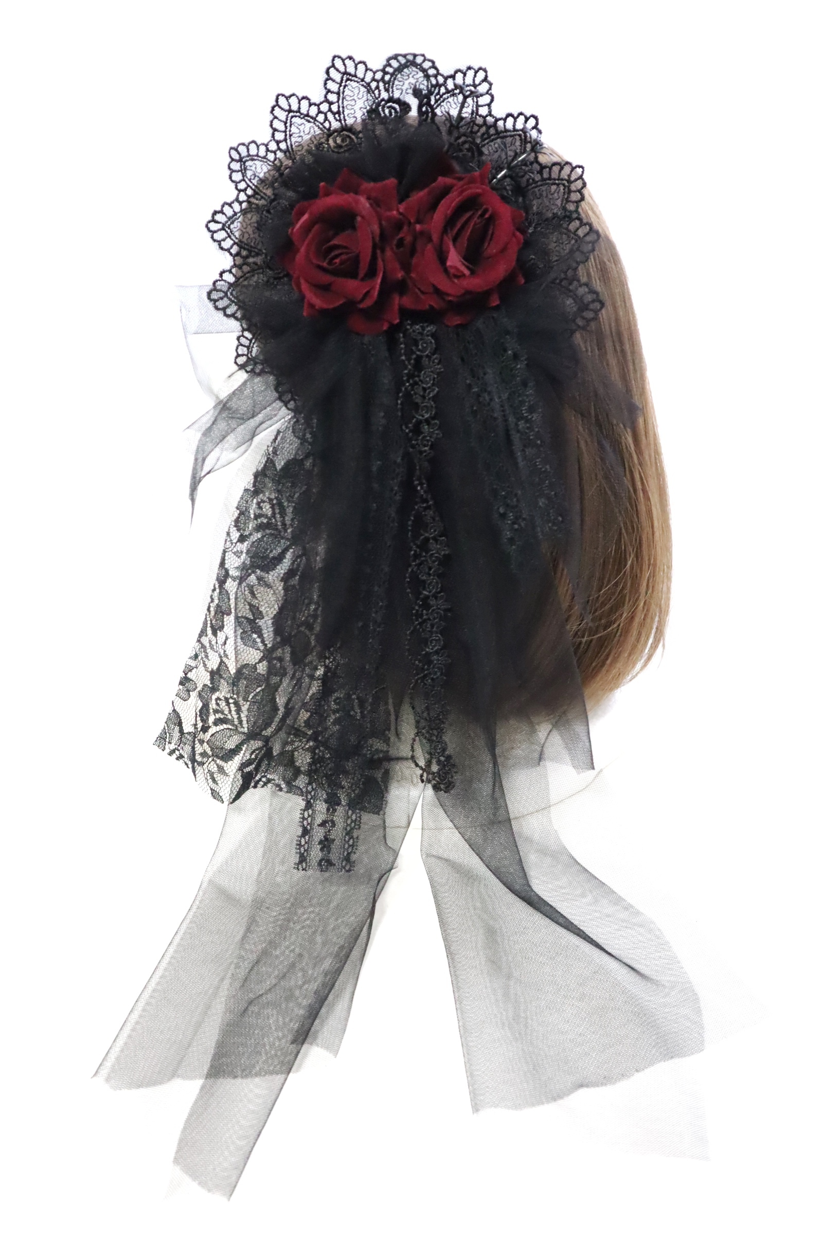 This corsage piece is mounted on a 2-way backing which allows it to be pinned or clipped on. Let this headdress be like a small bouquet that adds a nice touch to your gothic or classic lolita coord!