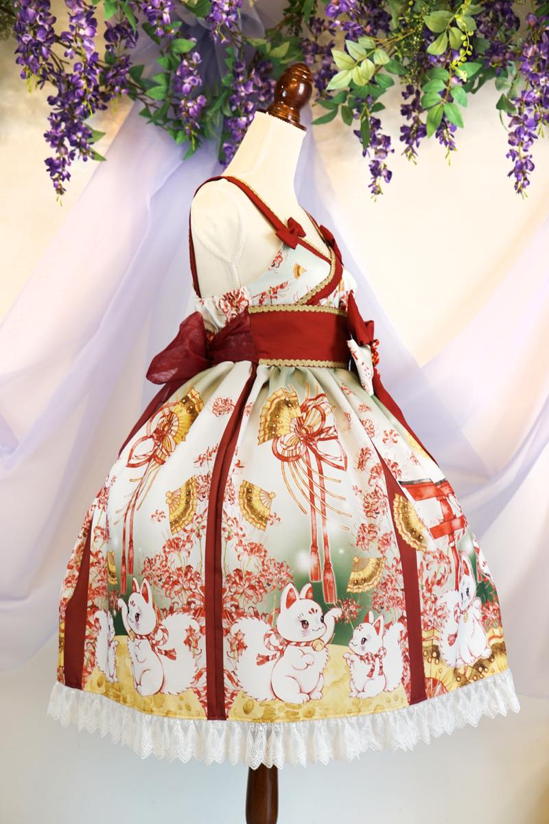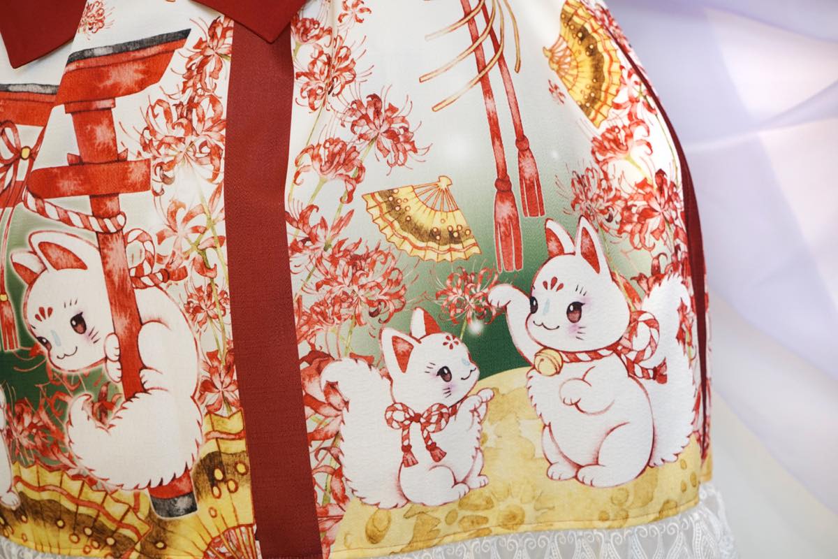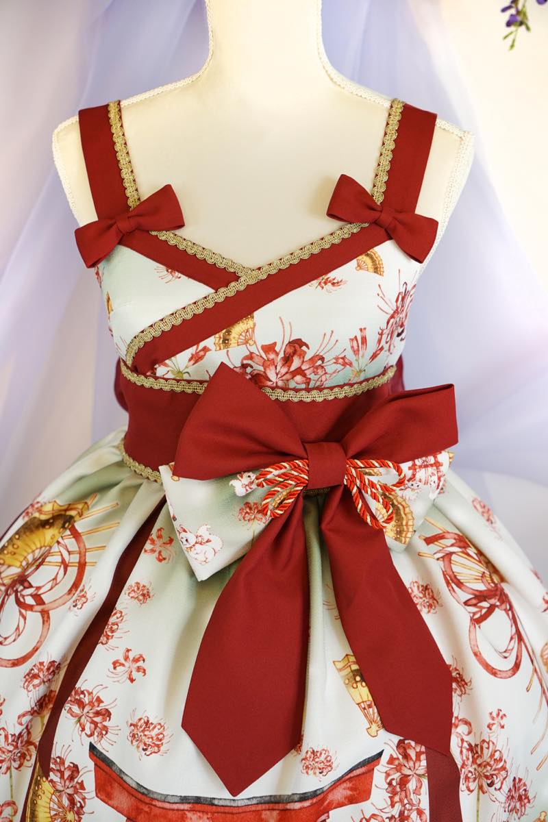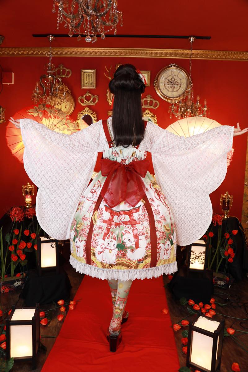 Royal Princess Alice: Fox&Spider Lily Dress with Obi (white)