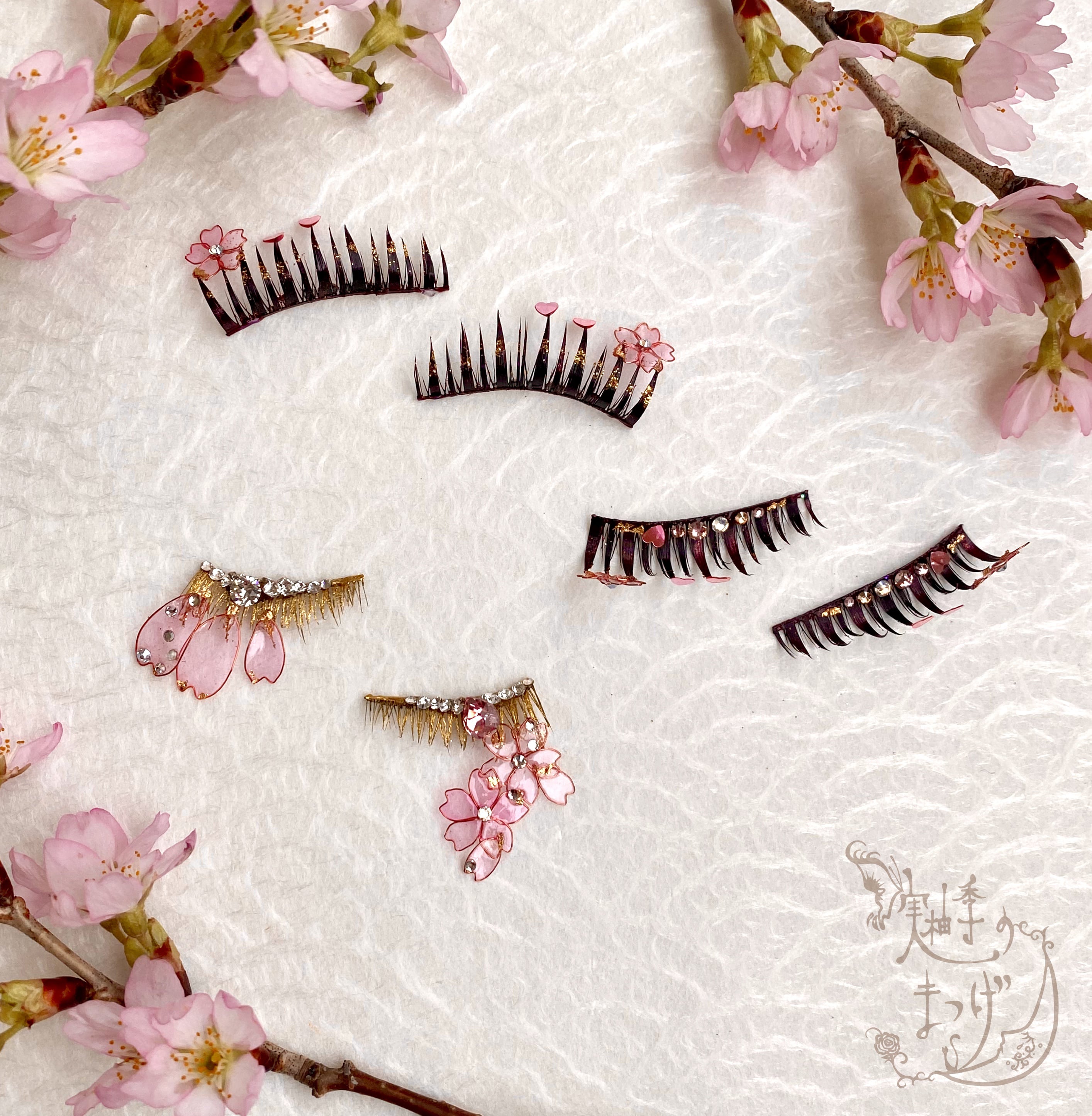 "Sakura no Namida" - bottom lashes adorned with a heart shaped Swarovski crystal connecting the beautiful sakura flowers.