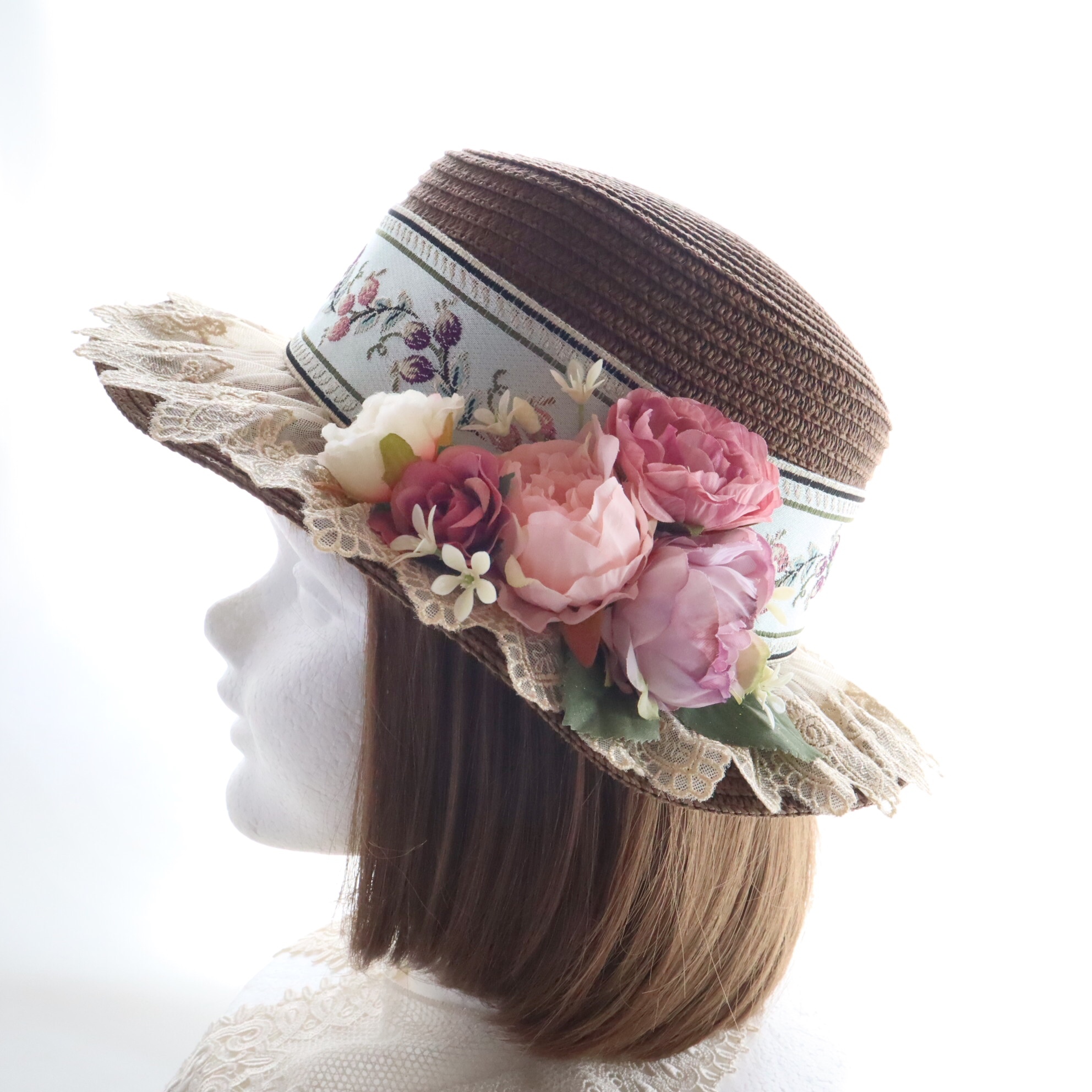 ※ Each hat is handmade and ribbon pattern placement, flower placement, etc. may differ slightly from stock photos.